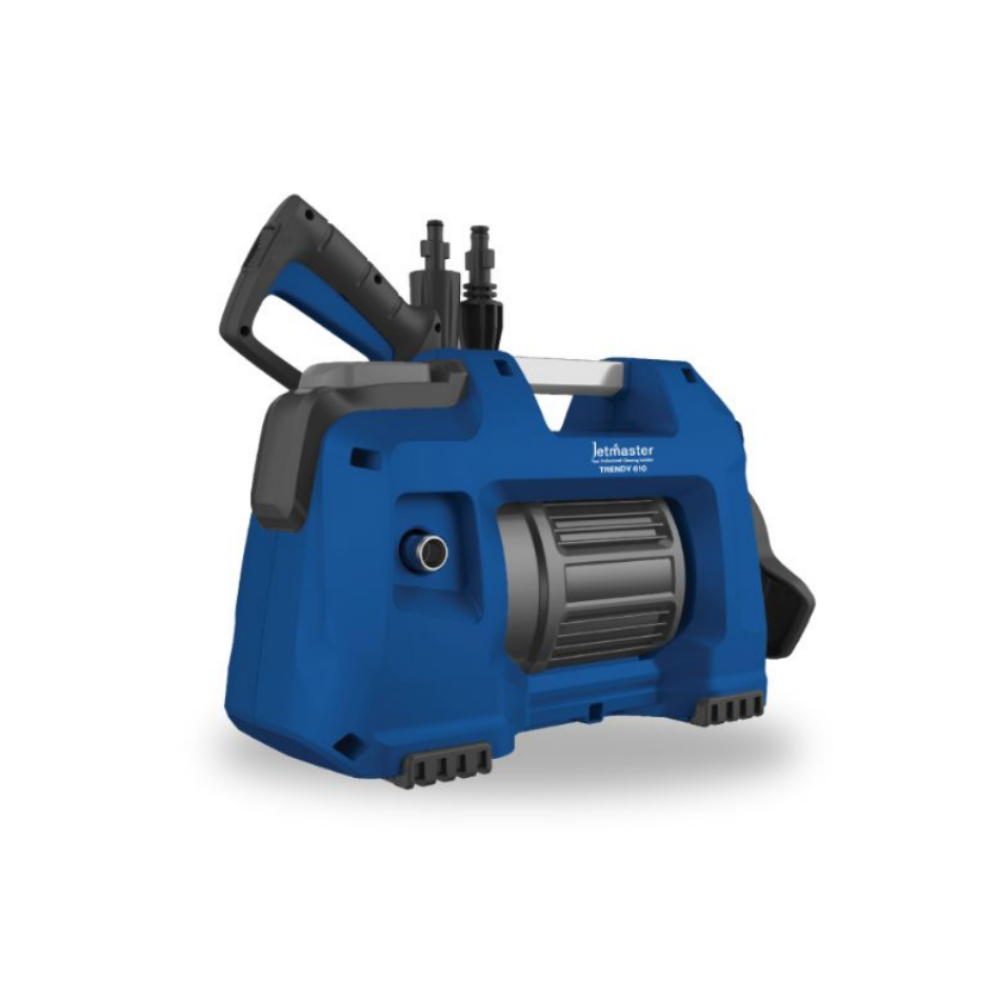 Delivering a maximum pressure of 100 Bar and a steady water flow rate of 6 Liters per minute, the Jetmaster Trendy 610 effortlessly blasts away stubborn dirt, mud, and grime. Its unique, compact design makes it highly portable, making it the top choice for both domestic household chores and light commercial cleaning applications.
