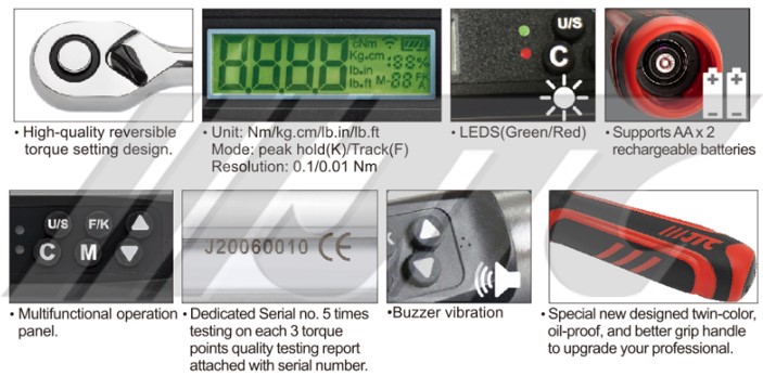 ● Sound/Indicator: Buzzer and LED alert for target torque