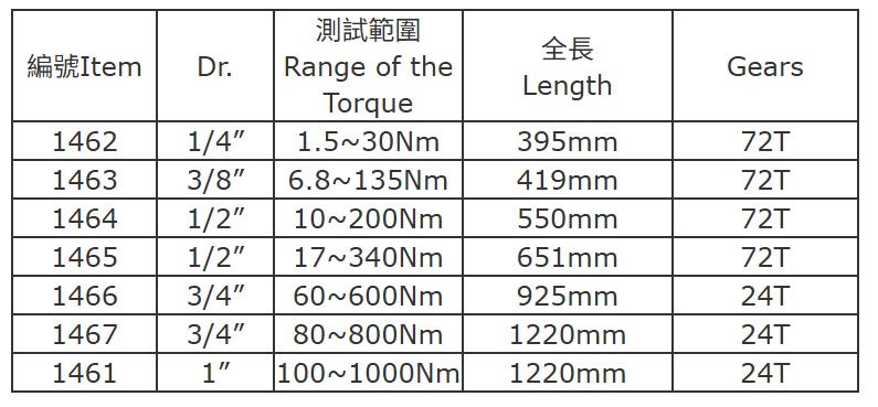 ● Torque Range: Varies by model (JTC 1461–1467 series)