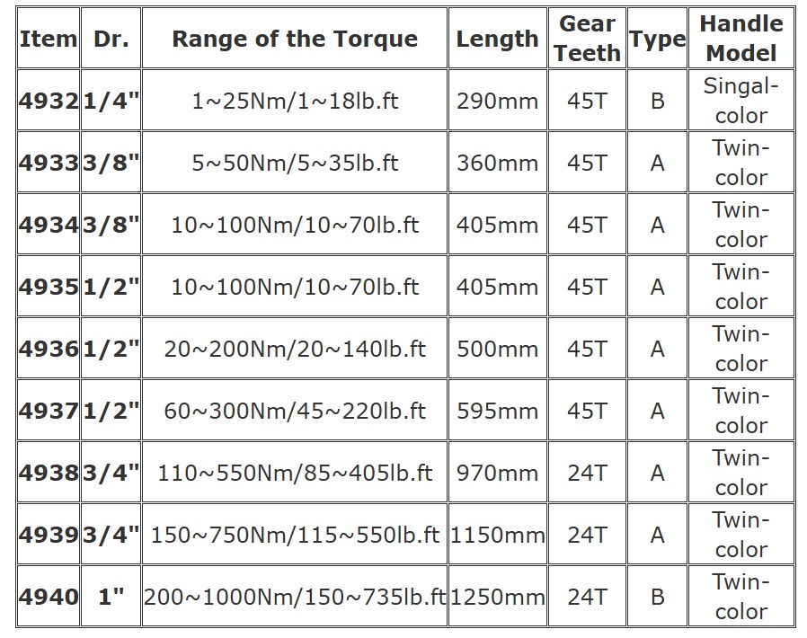 ● Torque Range: Varies by model (JTC 4932–4940 series)