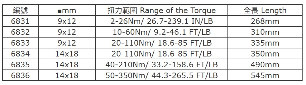 ● Torque Range: Varies by model (JTC 6831–6836 series)