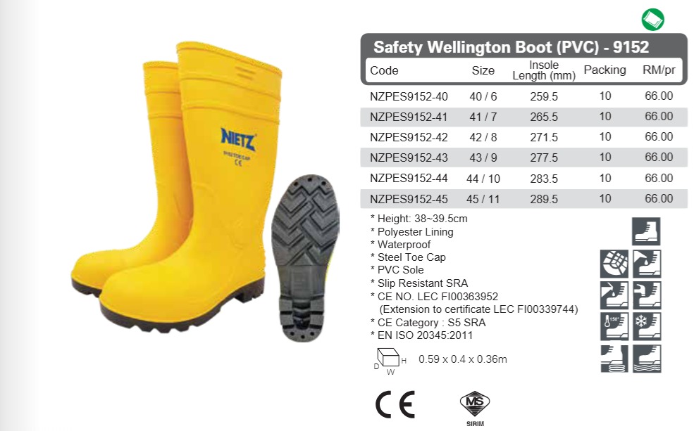 Where to buy NIETZ Safety Wellington Boot (PVC) 9152 in Malaysia | Dalson Industrial Supplies